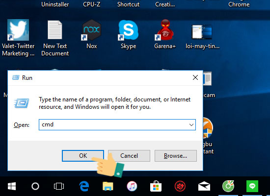 Giải pháp cho các bạn lúc này đó là renew lại địa chỉ IP máy tính laptop của mình bằng cách nhấn tổ hợp phím Windows + R để có thể mở hộp thoại Run và gõ lệnh cmd vào rồi nhấn phím Enter hoặc là OK