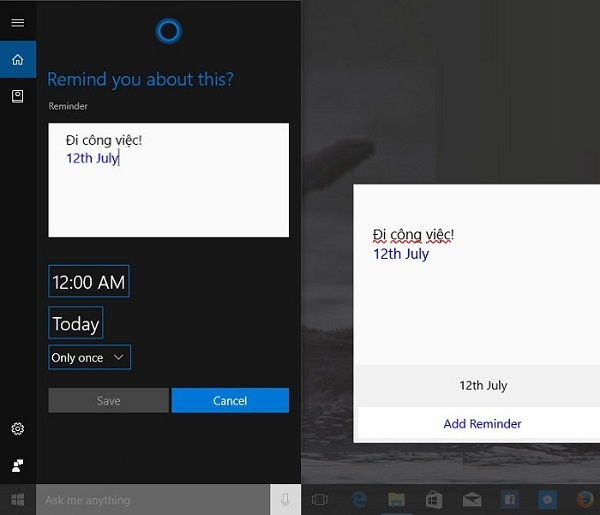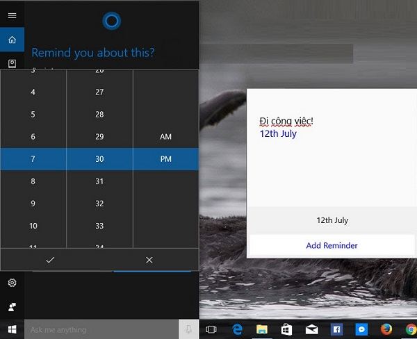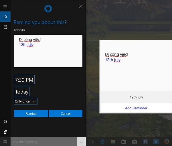 Bước 4 : Bây giờ thì các bạn hãy nhấn vào Remind để Cortana ghi nhớ lịch của các bạn