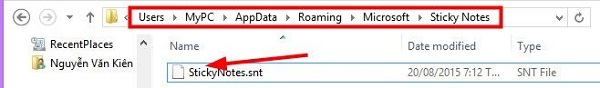 + Vào đường dẫn: UsersUsernameAppDataRoamingMicrosoftStick Notes và bạn copy lại file StickNotes.snt.