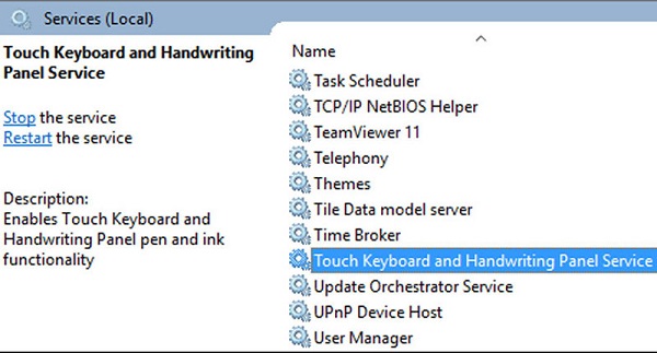 Bước 2: Ở trong dịch vụ Services thì các bạn sẽ tìm đến mục Touch Keyboard and Handwriting Panel Service. Đây là nơi nó dùng để quản lý touchpad của laptop Hp mà các bạn cần tắt.