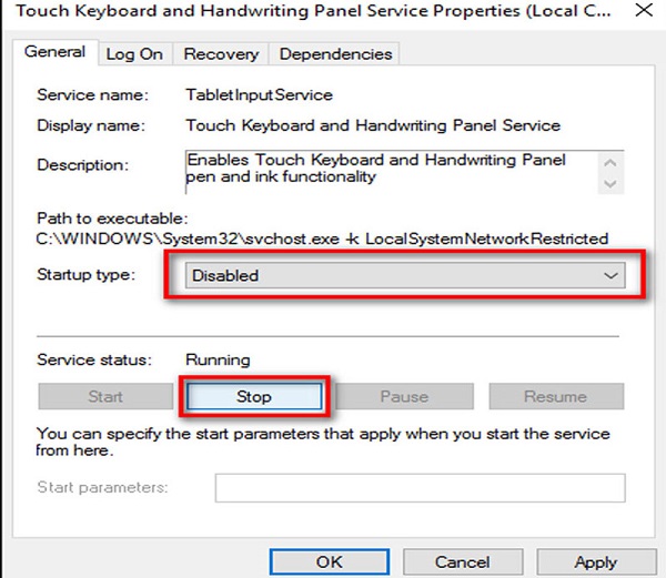 2. Tắt dịch vụ touchpad keyboard services
