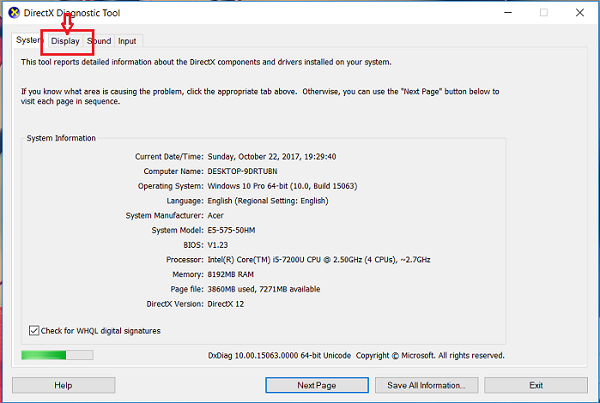 Đây là phần mềm nhỏ được tích hợp sẵn ở trong hệ điều hành windows nên nó không những giúp các bạn xem card đồ họa mà còn giúp người dùng biết được rất nhiều thông tin khác nhau như là CPU, Ram, drivers… Để xem được card đồ họa bằng phần mềm này thì các bạn làm như sau