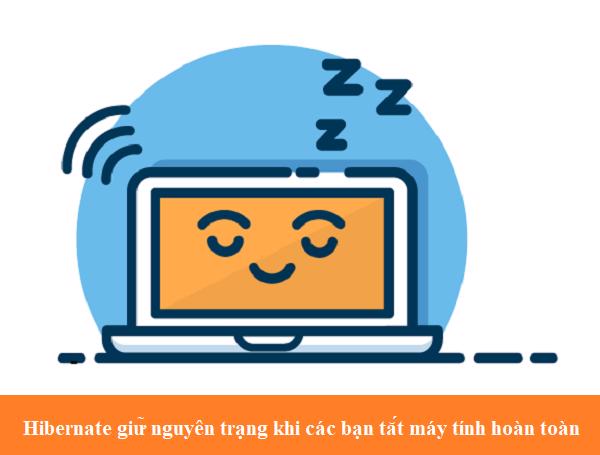 Hay còn được là trạng thái ngủ đông là trạng thái tắt hoàn toàn máy tính của bạn nhưng vẫn giữ nguyên trạng khi khởi động lại. Cơ chế hoạt động của Hibernate là khi các bạn chọn chế Hibernate thì những dữ liệu, ứng dụng đang chạy và file đang mở của các bạn từ trên Ram sẽ được chuyển trực tiếp vào ổ cứng, sau đó thì ngắt điện hoàn toàn cho hệ thống máy tính. Khi máy tính bật lại sau khi ngủ đông, thì các dữ liệu chứa trạng thái sẽ được chuyển lại bộ nhớ Ram và khởi động hệ thống nguyên trạng như lúc đầu