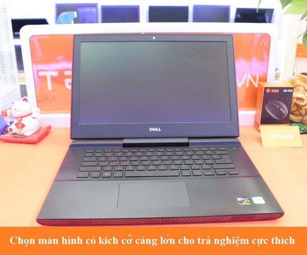 Các dòng máy tính hiện nay có hai kích cỡ phổ thông chính là 14.1 inch và 15.6 inch, hay các kích cỡ lớn 17.1 inch, 18.2 inch cũng là lựa chọn phù hợp với mục đích chơi game. Khi chọn máy tính có kích cỡ màn hình càng lớn thì nó càng nặng, khá cồng kềnh nhưng trải nghiệm hình ảnh lại tốt hơn và màn hình nhỏ thì ngược lại. Với các game thủ không chuyên thì dòng laptop 15.6 inch sẽ phù hợp nhất; các game thủ cực kỳ đam mê lĩnh vực này thì chọn laptop có kích thước lớn hơn để có nhiều trải nghiệm tuyệt vời hơn với trò chơi của mình. Tiếp đến là độ phân giải của màn hình HD, full HD hay 4k. Các con số này thể hiện tính sắc nét, chân thực của hình ảnh rất có thể nó sẽ ảnh hưởng tới chất lượng game bạn tham gia. Nếu đã chọn laptop chơi game thì bạn nên chọn dòng full HD trở lên tới 4k.