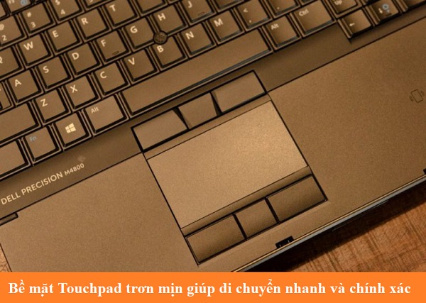Touchpad với 6 phím chuột bao quanh và bề mặt trơn mịn giúp di chuyển được nhanh, chính xác cũng như độ phản hồi rất tốt. Diện tích Touchpad hơi nhỏ nên cảm giác sử dụng không được thoải mái mặc dù vậy những bạn chuyên dùng thiết kế thường sẽ sử dụng chuột rời chứ ít khi dùng touchpad.