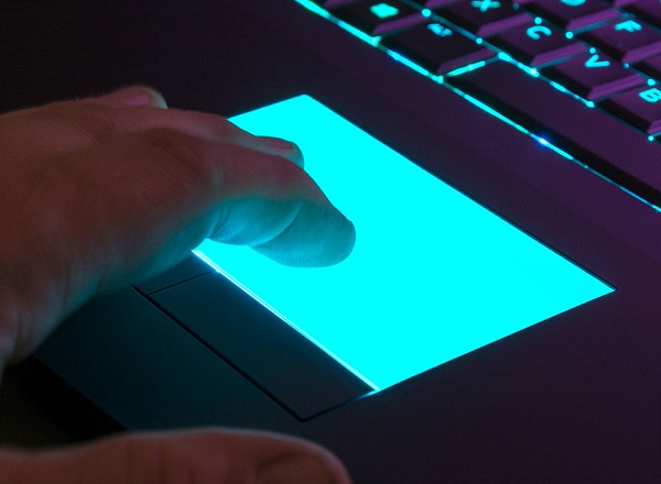 Touchpad cũng được trang bị hệ thống đèn nền có thể đổi màu là một yếu tố đặc trưng của Alienware được các game thủ rất thích. Chất lượng khi rê của bàn di chuột trên bề mặt kính tốt, thao tác đa điểm nhanh và chính xác. Hai phím chuột cứng phải/trái được làm to bản và cũng được phủ lớp cao su, độ nẩy khi bấm tốt và không phát ra tiếng kêu lớn.