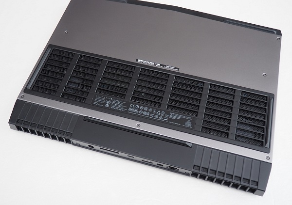 Phần cạnh sau của máy với thiết kế hốc tản nhiệt được làm nhô hẳn ra là điểm khác biệt rõ ràng nhất nếu so với phiên bản Alienware 17 R3 (2017). Hốc tản nhiệt 2 bên được làm kích thước lớn hơn nhiều và hầm hố nhờ vào những đường gân dập nổi, những lá đồng tản nhiệt dễ dàng nhìn thấy nhưng nếu Alienware sơn đỏ thay vì giữ nguyên tông màu đen thì độ ngầu sẽ nhiều hơn.