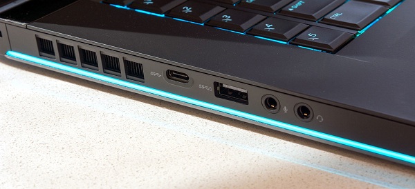 Cạnh trái của máy gồm: Hốc tản nhiệt, cổng khóa bảo vệ laptop, cổng USB 3.0 chuẩn Type-C nên truyền tải dữ liệu tốc độ cao, cổng USB 3.0 được tích hợp công nghệ PowerShare giúp sạc pin cho chiếc máy khi kết nối mà không cần khởi động máy.