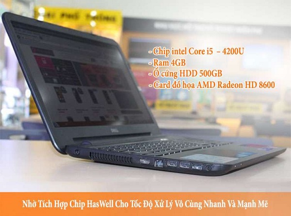 Không chỉ sở hữu vẻ ngoài thời trang, mà Dell Inspiron 3537 còn ẩn chứa sức mạnh bên trong nhờ tích hợp chip Haswell cho tốc độ xử lý vô cùng nhanh và mạnh mẽ. Máy tính xách tay cũ Dell Inspiron 3537 với core i5 – 4200U cùng tốc độ xung nhịp 1.6 GHz giúp xử lý tốt các hoạt động đa nhiệm (nhanh, mượt mà). Với RAM 4GB và bộ nhớ lên đến 500GB cho bạn tha hồ lưu trữ dữ liệu. Ngoài ra, nếu bạn là một tín đồ game hay bạn là người đam mê đồ họa thì Dell Inspiron 3537 hoàn toàn đáp ứng được nhu cầu đó, bởi máy được trang bị card đồ họa rời AMD Radeon HD 8600M giúp máy hoạt động mượt khi sử dụng các chương trình đòi hỏi cấu hình cao.