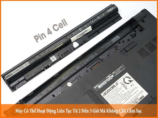 Với pin tùy chọn pin 4 cell máy có thể hoạt động trong vòng 2 đến 3h mà không cần cắm sạc.