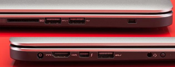 - Cạnh trái của máy có một cổng HDMI, một jack cắm tai nghe, hai cổng USB 3.0 và cổng kết nối mini-DisplayPort.