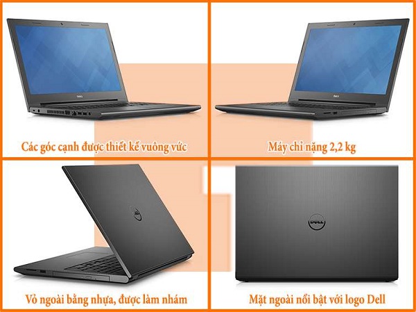 Với thiết kế các góc cạnh vuông vức nên tạo sự cứng cáp, khá mạnh mẽ và vỏ ngoài được làm bằng nhựa hơi nhám, trên nắp của máy là logo Dell nổi bật. Toàn bộ máy được sơn màu đen khá tinh tế nhưng không kém phần sang trọng.