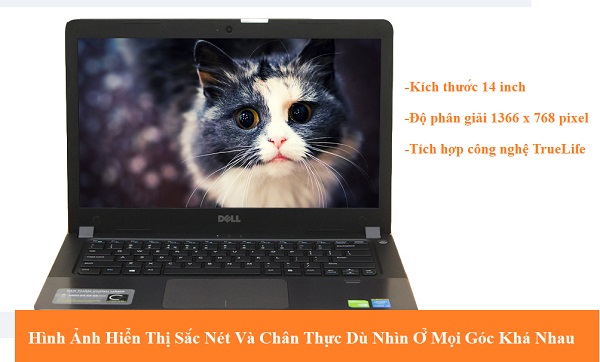 Màn hình với kích cỡ là 14 inch với độ phân giải HD 1366 x 768 pixel và được tích hợp công nghệ TrueLife cho chất lượng hình ảnh hiển thực chân thực và sắc nét dù ở mọi góc nhìn khác nhau