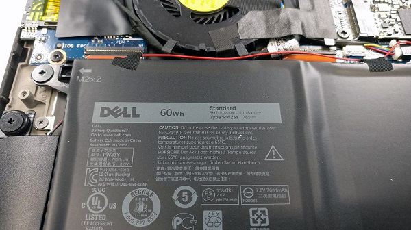 Dell XPS 13 9370 sử dụng một viên pin 52 W thay vì 60 W như trên chiếc laptop XPS 9360. Tuy nhiên thời lượng sử dụng pin cũng không hề giảm đi, theo nhà sản xuất thì thời lượng sử dụng pin lên đến 19 giờ 46 phút đồng hồ trên mô hình Full HD khi sử dụng các bạn Word hoặc Excel làm việc.