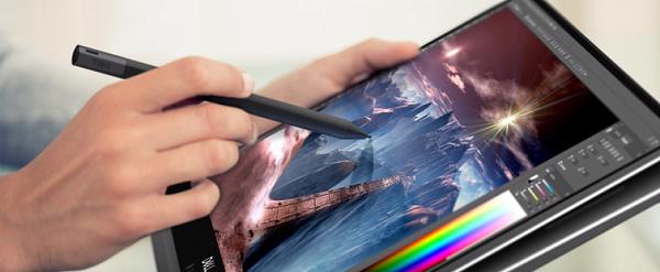 Đúng như cái tên của nó XPS 15 là một sự chuyển đổi 2 trong 1 cho phép người dùng có thể xoay màn hình lên đến một góc 360 độ, nên các bạn hoàn toàn có thể sử dụng nó như là một chế độ máy tính bảng hoặc chế độ lều. Ngoài ra các bạn có thể sử dụng bút dựa trên nền Wacom và được hỗ trợ độ nghiêng với 4.096 điểm áp lực cho phép các bạn ghi chép và phác họa cứ như trên bút chì và giấy vậy.