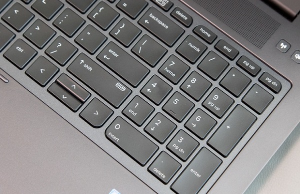 Hãng HP quyết định giữ nguyên bộ bàn phím và touchpad từ đời G3. Vẫn là bộ bàn phím đen chiclet có khu vực numpad riêng biệt. Bố trí các phím được thiết kế hợp lí và đẹp đẽ, khoảng cách giữa các phím được cách đều nhau tạo cho bạn có các thao tác dễ dàng nhanh chóng và mượt mà. Nhưng có một điểm trừ cho chiếc máy tính HP ZBook 15 G4 này là hành trình phím hơi nông nên những thao tác không được hoàn hảo nhất. Song, thiết kế của một số phím – mũi tên và F – khá nhỏ nên đôi khi gây ra sự bất tiện.