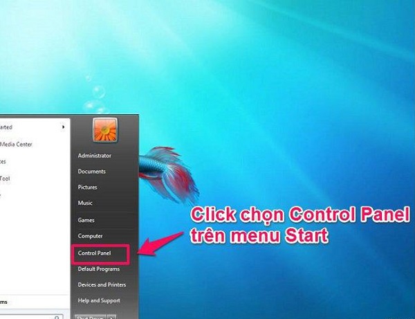 Bước 1 : Đầu tiên trên màn hình máy tính xách tay Dell bạn rê chuột đến vị trí thanh công cụ ở góc dưới bên trái hoặc nhấn phím Windown thì cửa sổ Start sẽ mở ra rồi tiệp tục chọn Control Panel và sau đó thì bạn click vào Network and Internet như hình minh họa ở phía dưới