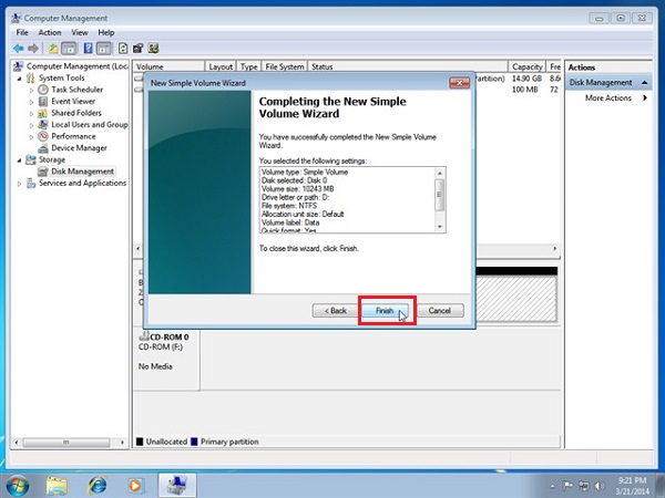 Bước 7 : Đặt tên cho phân vùng mới và nhấn vào Next rồi tiếp đó ở bước cuối thì các bạn nhấn Finish là xong