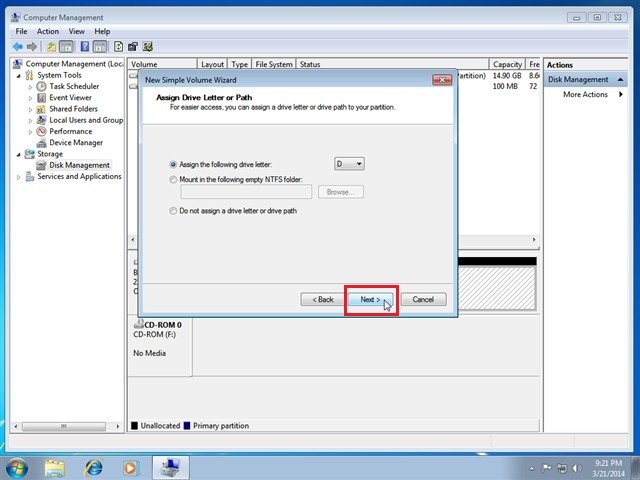 Bước 6 : Các bạn chọn tên chữ cái cho phân vùng rồi sau đó nhấn Next