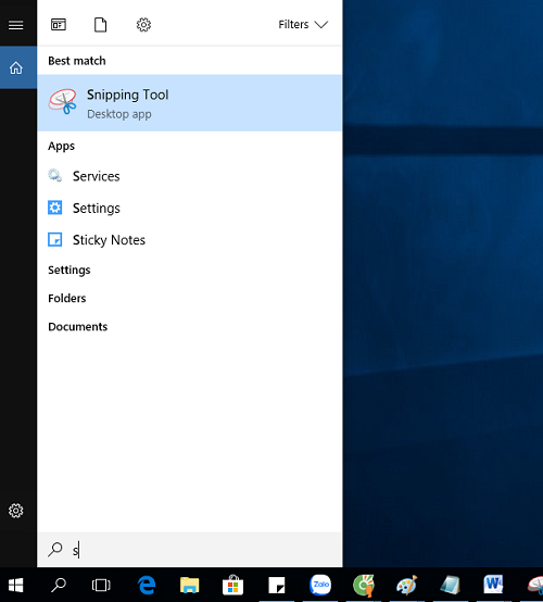 Bước 1: Bạn có thể nhấn đồng thời tổ hợp phím Windows+ Q hoặc là Windows + S để mở nhanh thanh công cụ tìm kiếm. Sau đó, các bạn nhập vào đó từ khóa Snipping Tool để tìm và có thể mở ứng dụng.