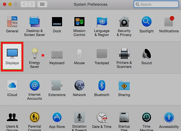 Bước 3 : Sau khi cửa sổ System Preferences thì bạn nhấn vào mục Displays