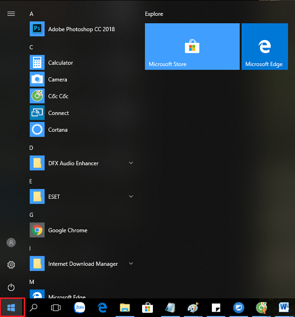 Bước 1 : Nhấp vào biểu tượng Windows ở góc dưới bên trái màn hình