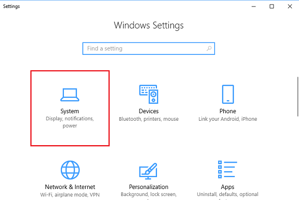 Bước 3 : Ngay sau khi cửa sổ Settings hiện ra bạn nhấn chọn vào System
