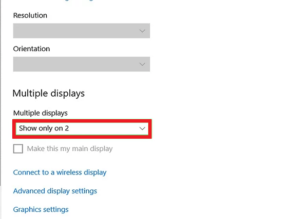 Show only on 2 : Chỉ hiển thị nội dung của máy tính xách tay ở trên màn hình thứ hai. Màn hình laptop sẽ tắt