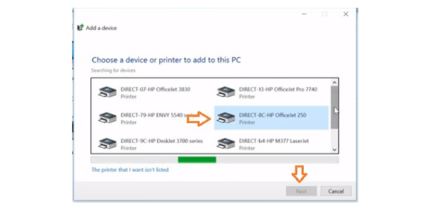 Bước 6 : Chọn tên máy in hiển thị cần cài mạng wifi rồi nhấn Next