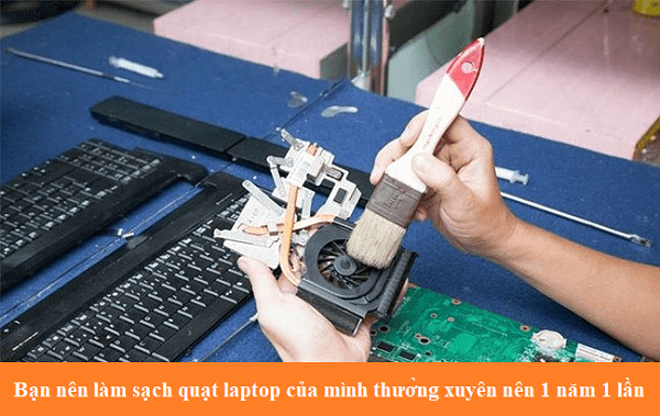 Tùy vào môi trường các bạn sử dụng thì việc bị bám bụi quá nhiều vào quạt gây cản trở quá trình tản nhiệt và phát ra tiếng kêu. Bạn hãy mang đến các trung tâm vệ sinh laptop uy tín để làm sạch laptop đặc biệt là chiếc quạt. Nếu như có kinh nghiệm thì các bạn có thể tự mình thực hiện công việc này tại nhà. Thông thường khi mua laptop mới và sử dụng khoảng hơn 1 năm thì các bạn nên vệ sinh máy tính một lần