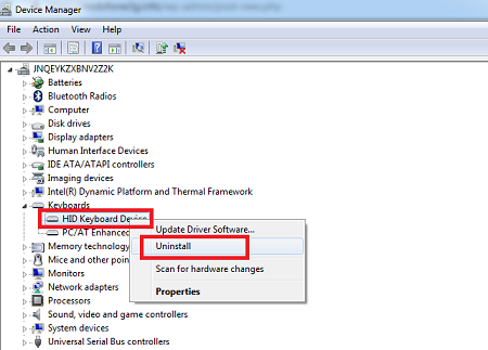 Bước 3 : Tiếp theo bạn nhấn chuột phải vào tên của bàn phím mà bạn muốn khóa nó và sau đó thì chọn Uninstall device
