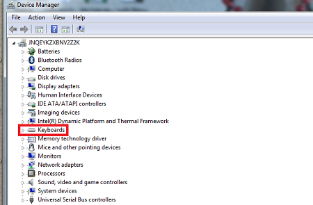 Bước 2 : Sau khi cửa sổ của Device Manager xuất hiện thì các bạn nhấn tiếp vào mục Keyboards để có thể biết bàn phím đang kết nối với máy tính.