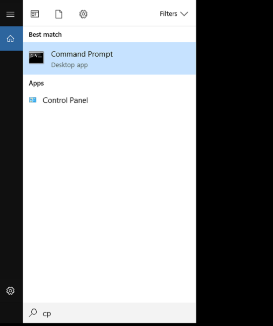 Bước 1: Trước tiên chọn vào nút Start ở góc dưới màn hình rồi sau đó nhập cp vào thanh Search và nhấn Enter.