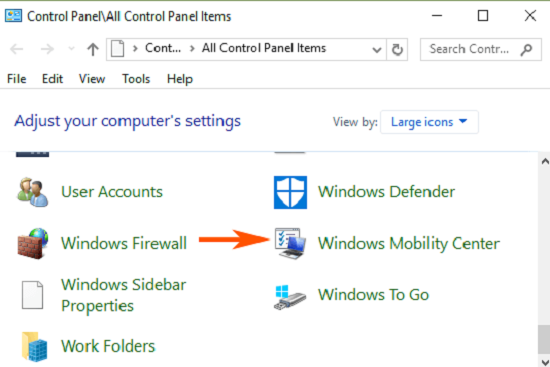 Bước 2: Lúc này ở trên màn hình máy tính sẽ xuất hiện cửa sổ của mục Control Panel thì ở tại đây các bạn nên điều hướng tới mục Windows mobility center rồi sau đó click vào đó để có thể mở ứng dụng.