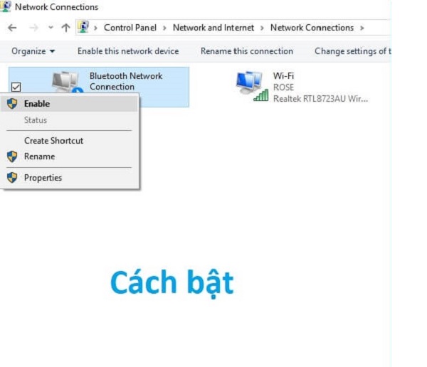 Click chuột phải vào mục Bluetooth Nextwork Connection và cuối cùng các bạn chọn vào Disable để có thể tắt Bluetooth ( hoặc nếu như bạn muốn bật bluetooth thì cũng sẽ phải làm tương tự