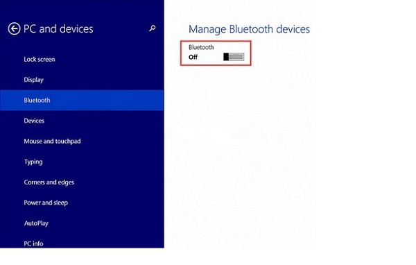 Với trên windows 8.1 thì các bạn cũng cần phải vào mục setting -> tiếp theo thì chọn vào mục change PC setting -> sau đó click chọn vào mục PC and devices -> cuối cùng thì click vào phần bluetooth và kéo thanh để bật lên