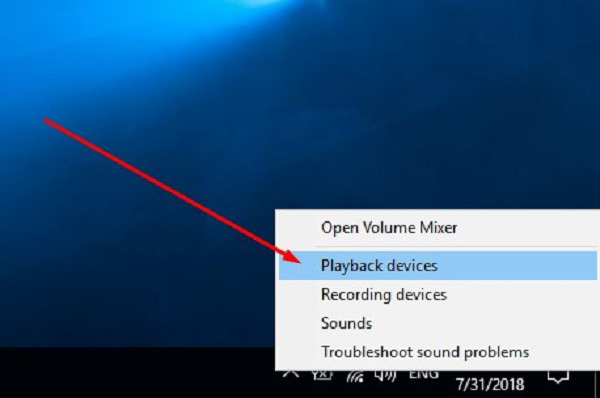 Bước 1 : Nhấp chuột phải vào biểu tượng hình chiếc loa trên thanh Taskbar ở góc trái phía dưới màn hình, hay các bạn có thể vào Control Panel -> rồi sau đó chọn Sound. Tiếp đến chọn vào Playback Devices để mở cửa sổ Sound.