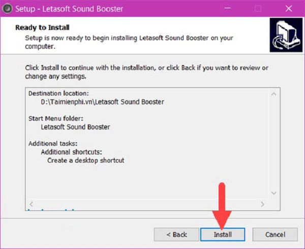 Bước 5 : Sau cùng bạn chỉ cần nhấn vào Install để có thể tiến hành cài đặt phần mềm Sound Booster.