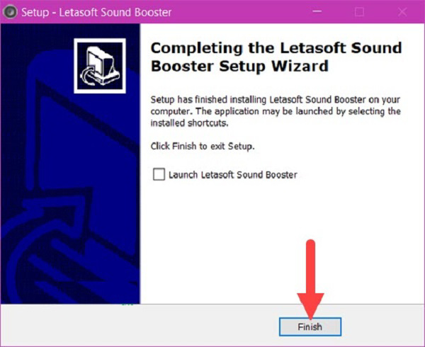 Bước 6 : Sau khi cài đặt xong Sound Booster, thì hãy nhấn vào Finish và đừng quên tích vào Launch letasoft Sound Booster để khởi động phần mềm này ngay.