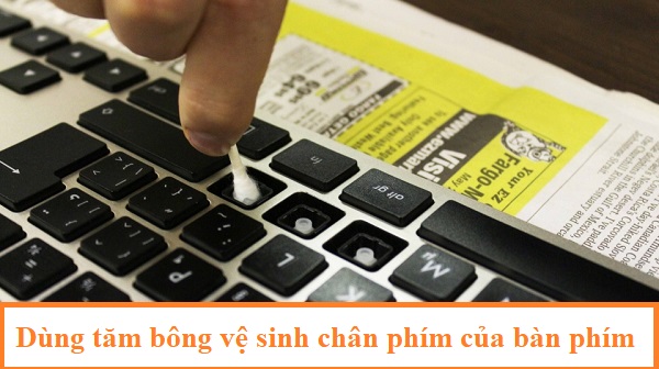 Một trong những hướng dẫn về vệ sinh bàn phím cho máy tính laptop đúng cách và dễ dàng thực hiện nhất đó là dùng tăm bông để khều ở dưới bàn phím. Vì đầu tăm khá nhỏ nên rất là thích hợp để móc các thứ như cặn bẩn, tóc hoặc vụn bánh…ra khỏi bàn phím. Thêm nữa, nếu như khoảng cách giữa những phím bấm lớn thì các bạn có thể dùng bông tăm để có thể làm sạch bụi bẩn.