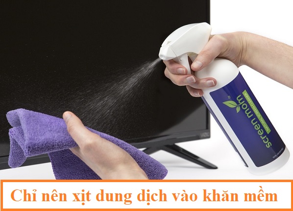 Đối với các vết bẩn không thể làm sạch sẽ chỉ với bằng khăn vải hoặc là mút xốp thì bạn cần phải sử dụng đến dung dịch lau màn hình. Bạn tuyệt đối không được xịt dung dịch nay lên lau kính một cách trực tiếp lên màn hình vì có thể để cho tránh dung dịch thẩm thấu vào ở bên trong qua các kẽ gây ẩm mốc cho màn hình và vi mạch. Lâu dài thì màn hình sẽ xuất hiện bị ố màu.