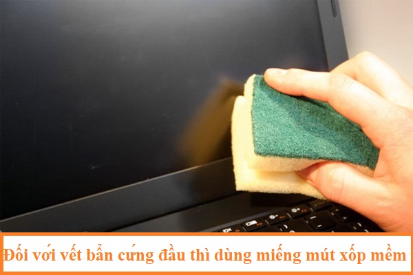 Tốt nhất là nên sử dụng một miếng mút xốp mềm (loại dùng rửa bát). Cách này thì bạn cần phải sử dụng dung dịch lau chùi đã chuẩn bị trước đó để loại bỏ những vết cứng đầu ở trên màn hình