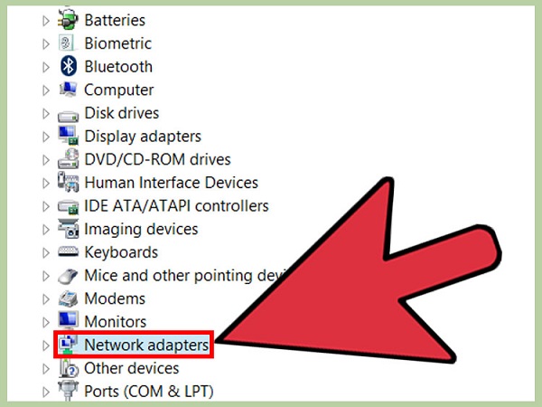 Bước 4: Đi tới mục Network Adapters ( là Bộ chuyển đổi mạng) ở trong danh sách những thiết bị. Danh sách của tất cả bộ chuyển đổi (adapter) và mạng ở trên máy tính sẽ được mở ra và trong đó sẽ có một mục chứa từ wireless (mạng không dây).