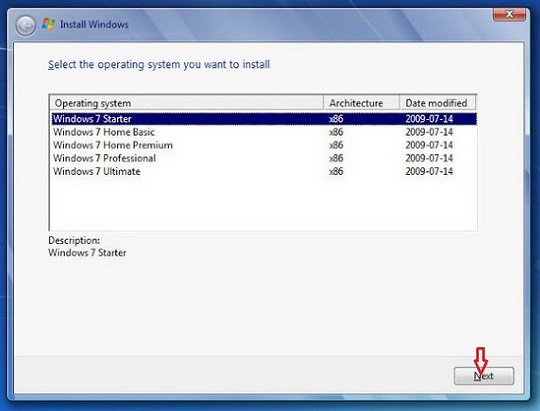 Chọn Win 7 mà bạn muốn cài đặt -> bấm