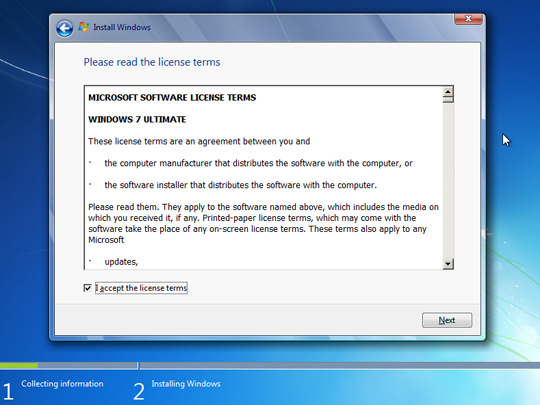 Quá trình cài đặt Win7 đã bắt đầu (Từ bước này sẽ được thực hiện giống như từ bước đánh dấu . đã nêu ở mục I ).