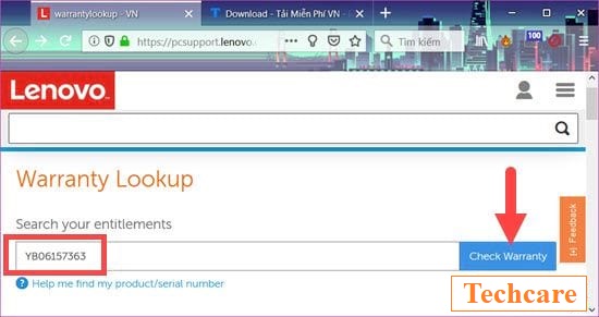 Bước 4 : Sau khi đã điền xong số Service Tag Lenovo thì hãy tiếp tục nhấn vào mục Check Warranty để tiến hành cho việc kiểm tra bảo hành Laptop Lenovo.
