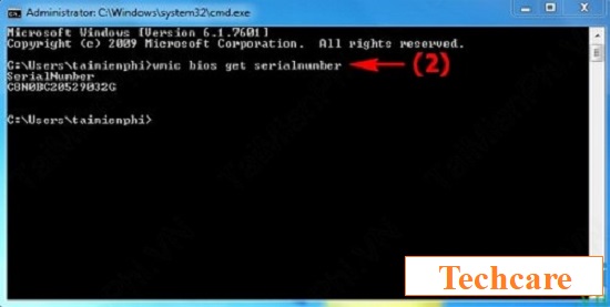 Bước 2 : Ở trong cửa sổ của dòng lệnh thì các bạn nhập vào lệnh " wmic bios get serial number " để có thể xem số Serial của Laptop Lenovo. Sau khi các bạn đã nhấn Enter thì số Serial Laptop sẽ được hiển thị trên màn hình máy tính ở dòng dưới cho các bạn xem.