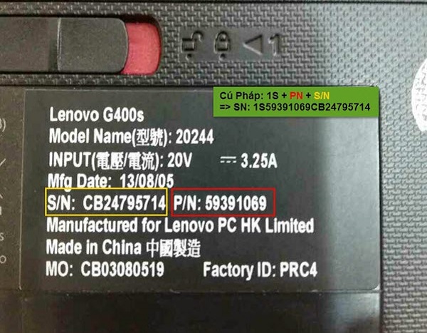 - Trường hợp ở trên nhiều dòng laptop Lenovo nằm ở dưới đáy của chiếc máy nên các bạn chỉ cần lật ngược máy tính lên và kiểm tra số serial được ghi ở trên một miếng dán