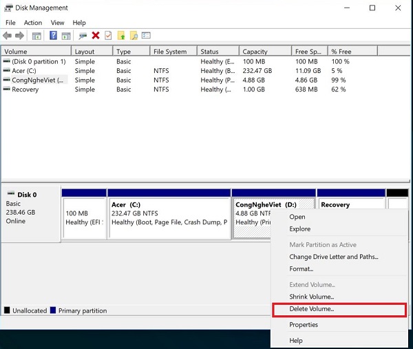 Trong quá trình sử dụng thì lượng thông tin lưu trữ lên từng phân vùng ổ đĩa có thể sẽ không đều nhau do mục đích sử dụng. Và công cụ của Microsoft cũng sẽ hỗ trợ người dùng xóa đi các phân vùng không dùng đến và gộp nó với phân vùng cần thiết.