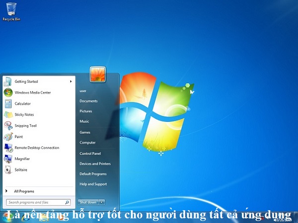 Là nền tảng hỗ trợ tốt nên người dùng có thể dùng để cài đặt hầu như tất cả những ứng dụng cho máy tính laptop của mình với độ tương thích khá cao. Windows 7 cũng bảo mật tương đối tốt, người dùng còn có thể sử dụng Windows Defender do nhà sản xuất Microsoft đã tích hợp sẵn vào hệ điều hành để có thể kiểm tra và diệt virus.